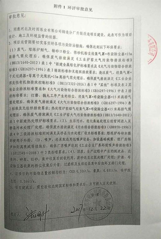 環評審批意見-河北及時雨泵業有限公司