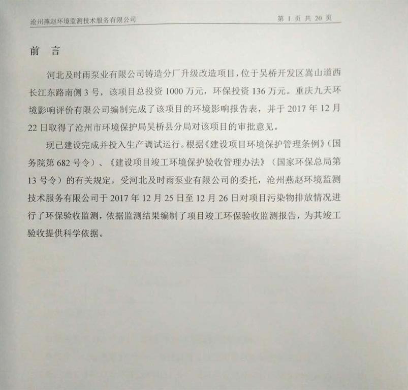 環(huán)評公示-河北及時雨泵業(yè)有限公司